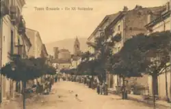 In 1960 Tocco underwent major changes in its town center. Due to an ordinance of the public works department, several historic houses on the slope of Porta del Borgo towards the hill along with the Monte dei Morti church were demolished, as they turned out to be buildings still unsafe from the 1933 Maiella earthquake that damaged them.[102][115] Also in the Porta del Borgo area, the fountain with the obelisk dedicated to Giordano Bruno was demolished, while in today's Via Santa Liberata the church of Santa Liberata was demolished.[116]