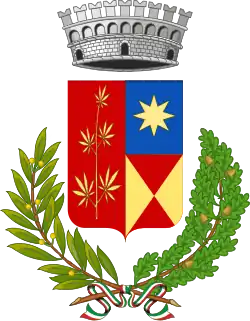 Nevertheless, from the 17th century onwards, the hemp cultivation area in Campania steadily increased to include the southern part of the modern-day Province of Caserta, and most of the former Province of Naples, including the sides of Mount Vesuvius.[8] Furthermore, according to an economic census compiled under King Joachim-Napoleon, during the French rule of the Kingdom of Naples between 1806 and 1815, hemp fields were mainly located in the fertile Volturno river basin, between the comuni of Capua, Caserta, Maddaloni, and Aversa; while significant exports of hemp from Naples towards the rest of Europe were recorded around 1840.[8] The legacy of the once-flourishing industry of hemp cultivation and processing in the area is attested in the toponyms of several streets and towns around Naples,[8] while the comuni of Arzano and San Marco Evangelista even show a hemp plant in their coats of arms.[60][61]