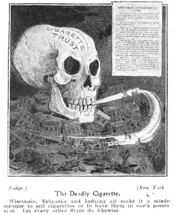 In the late 1800s, the temperance movement was strongly involved in anti-tobacco campaigns, and particularly with the prevention of youth smoking. They argued that smoking was addictive, unhealthy, stunted the growth of children, and, in women, was harmful during pregnancy.[12]