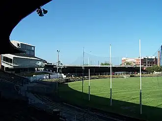 At the end of the 1896 season, Collingwood and South Melbourne finished equal at the top of the ladder with records of 14–3–1, causing a playoff match to determine the premiership; this was the first time this had occurred in VFA history.[5] The VFA delayed the playing of the final match between the two top teams for a week to avoid adversely affecting the attendance of the other final-round matches.[6][7] The game was played on 3 October 1896 at the East Melbourne Cricket Ground. Collingwood won the match six goals to five, in front of an estimated crowd of 12,000.[8]