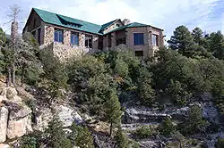 In 1917 on the North Rim, W.W. Wylie built accommodations at Bright Angel Point.[42] The Grand Canyon Lodge opened on the North Rim in 1928. Built by a subsidiary of the Union Pacific Railroad called the Utah Parks Company, the lodge was designed by Gilbert Stanley Underwood who was also the architect for the Ahwahnee Hotel in California's Yosemite Valley. Much of the lodge was destroyed by fire in the winter of 1932, and a rebuilt lodge did not open until 1937. The facility is managed by TW Recreation Services.[44] Bright Angel Lodge and the Auto Camp Lodge opened in 1935 on the South Rim.