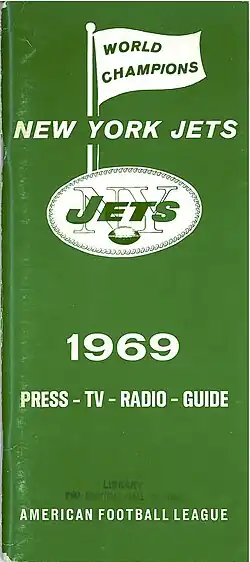 In 1968, Werblin's co-owners gave him an ultimatum – either buy them out or be bought out. He chose the latter option, reportedly profiting $1.4 million for his 1963 investment of $250,000.[58] Prior to Werblin's departure, the Jets had considered firing Ewbank.[59] They attempted to secure Green Bay Packers coach Vince Lombardi, but Lombardi decided to remain in Green Bay one more season.[60] The season started with the usual three road games due to the team's status as secondary tenant to the Mets at Shea Stadium. The Jets rose to the top of the AFL East; they had lost only two games by mid-November and built a three-game lead over second-place Houston. New York's next game was at Oakland. In what became known as the Heidi Game, the Jets took a 32–29 lead with 68 seconds left, only to have Oakland score two touchdowns to win the game. However, the touchdowns went unseen by much of the national TV audience, as NBC had switched at 7:00 p.m. to a TV movie of Heidi.[61] Nevertheless, the Jets won their remaining games to finish 11–3.[61] In the playoffs, the Jets defeated the Raiders for the AFL Championship at Shea Stadium, 27–23, a game in which Namath threw three touchdowns, including the game winner to Don Maynard in the fourth quarter.[62]
