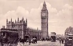The history of the Palace of Westminster began in the Middle Ages – in the early eighth century – when there was an Anglo-Saxon church dedicated to St. Peter the Apostle which became known as the West Minster (St. Paul's being the East Minster).[1][2] In the tenth century the church became a Benedictine abbey and was adopted as a royal church, which subsequently became a royal palace in the 11th century.[3]