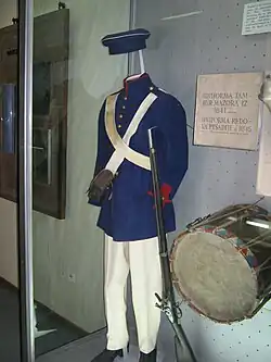 In 1808 the creation of a single regiment of infantry and another of mounted cavalry, marked the creation of the first uniformed and fully equipped regular Serbian forces. This Russian backed force was dissolved in 1813 following the termination of the First Serbian Uprising.[1]