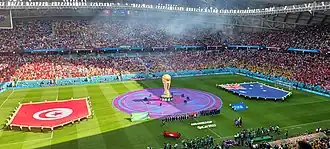 In September 2021, the national team began its matches during the 2022 FIFA World Cup qualification with three consecutive victories against Equatorial Guinea 3–0,[188] against Zambia in Ndola 2–0[189] and against Mauritania 3–0, followed by a draw against Mauritania in Nouakchott 0–0[190] and a loss against Equatorial Guinea in Malabo 0–1,[191] which leads to strong criticism from the supporters, the qualification for the play-offs is obtained after a victory against Zambia 3–1,[192] concluding with four wins, a draw and a loss.[193] In the meantime, Qatar hosted the 2021 FIFA Arab Cup. Tunisia qualified directly, due to the FIFA World Rankings. Tunisia started with a large victory 5–1 against Mauritania.[194] Then, the team suffered an unexpected defeat to Syria,[195] before beating the United Arab Emirates 1–0.[196] In the quarter-finals, the team improved and beat Oman 2–1.[197] In the semi-final, Tunisia collided with their rival Egypt, after a close match, Tunisia managed to score a goal in the 95th minute.[198] The victory allows Tunisia to reach its first FIFA final in the country's history.[199] In the final match, the Tunisian national team faced Algeria, but were beaten 0–2 in overtime.[200][201] Despite the loss of the title, the team's performance has restored confidence to the supporters.[202] In this context, they are congratulated by FIFA and named as the best supporters of the tournament.[203]