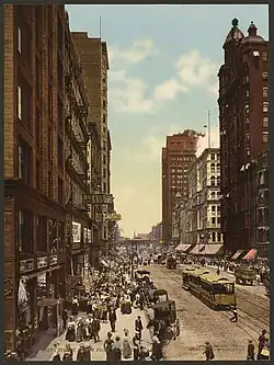 ![]() State Street in Chicago, c. 1900. The post Civil War era saw the rise of the United States as a major industrial economy. | |||