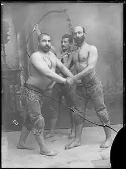 Many of the world's oldest depictions of wrestling can be found in the Middle East. Carvings and statues show that forms of belt wrestling existed in the region since ancient times, in addition to matches between humans and animals. Wrestling is also mentioned in the epics of Gilgamesh and the Shahnameh. Oil wrestling as practiced in present-day Turkey and Central Asia is recorded in ancient Sumeria and Babylon. In Persia, Pahlavani traditional grappling or koshti (کشتی) was practiced by both the upper and lower classes both for sport and as training for battle. In training halls known as zourkhaneh, soldiers practiced resistance exercises and grappling in a tradition now called Varzesh-e bastani (ورزش باستانی; lit. "ancient athletics"). Ancient Iranian combat-wrestling (koshti-ye jangi) included not only grabs but also punches and low kicks. As Iranian influence spread with the Achaemenid Empire and later the Persian Empire, the practice was adopted in the Indian subcontinent as Pehlwani.