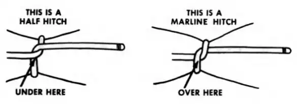 | Marline Hitching | A knot used to attach a rope to a cylindrical object. Similar in appearance to the Chain Hitch, but a succession of overhand knots. | |