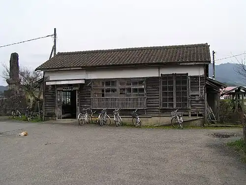 The private Kitakyushu Railway, which had a track between Hakata and Higashi-Karatsu by 1926 and had expanded southwards to Yamamoto by 1929. In a later phase of expansion, the track was extended west from Yamamoto to Imari, which opened as the western terminus on 1 March 1935. This station was opened on the same day as an intermediate station on the new track. The Kitakyushu Railway was nationalised on 1 October 1937 and Japanese Government Railways (JGR) assumed control of the station and designated the track which served it as part of the Chikuhi Line. With the privatization of Japanese National Railways (JNR), the successor of JGR, on 1 April 1987, control of the station passed to JR Kyushu.[5][6]