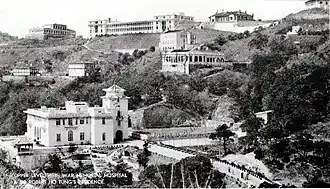 According to the Peak Reservation Ordinance, only Europeans were allowed to live on Victoria Peak. Hotung, who was half-European and half-Chinese, was already living on the Peak when the law was enacted.[7] Ho had a retreat on The Peak named "The Neuk", at 48 Aberdeen Road, but he primarily lived at a property named "Idlewild" at 8 Seymour Road in the city.[8] Ho never lived in Ho Tung Gardens.[1]
