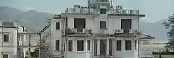 In 1923, Robert Hotung's adopted son Ho Sai Wing brought a plot of reclaimed land on the shore of Sha Tin Hoi next to the former KCR railway, and built a holiday mansion on it. Referencing Lake Windermere in the United Kingdom, the mansion was named Windermere (Chinese: 海天漁廬).[2] The mansion was also known as Ho Tung Lau (Chinese: 何東樓) and Eight Pointed Lau (Chinese: 八角樓) by the locals. The mansion's main building was built in a Colonial style with an encompassing veranda. It is two storeys tall, with two Cant Bays on both sides of the main entrance terminating on the second floor, its roof serves as a balcony. A octagonal pavilion stands points out from the top of the structure (hence the name Eight Pointed Lau). In addition to the main building, staircases connect to an accompanying two-storey living quarter on the side of the mansion.[4] There also stands a colonnaded single storey building detached from the main mansion on the other side of the plot.[5] In front of the mansion is a sports ground.[6]