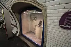 For more than ten years until 2018, the name of the station on the walls of the platforms were written in Parisine font on thin plates, covering the original names that were made of faience. As with Filles du Calvaire on line 8 and Porte des Lilas on line 11, they were removed and the faience signs were restored.