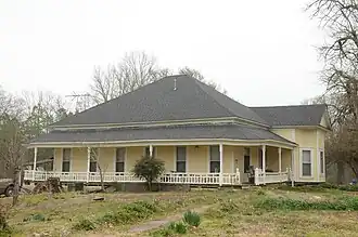 The Hodges House is a historic house on the east side of Arkansas Highway 7 south of the rural community of Bismarck, Arkansas. It is a distinctive single-story wood-frame house, with a projecting polygonal bay at one corner, and a porch that wraps around three sides of the house. The porch is supported by turned posts and has an elaborate Folk Victorian balustrade. The house was built in 1907 by Lee and Clara DeBray, and was sold to Thomas and Charlotte Hodges in 1925. Both of the Hodgeses were leading figures in the early development of archaeology in the state of Arkansas, amassing a collection of more than 50,000 artifacts, and occupying leadership positions in the Arkansas Archaeological Society. The Menard–Hodges site, now a National Historic Landmark, was purchased by Hodges in order to control research and preservation activities.[2]