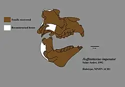 | Skeletal drawing of the skull of the adult holotype of H. imperator | |