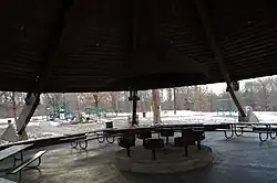 The pavilion was available to rent for a variety of events. When not rented, the pavilion was freely accessible to all park visitors. It was the most popular site within the park, renting for $150 per day, and raised more than $18,000 a year.[3][4] It was located atop Bonycastle Hill and acted as an architectural centrepiece along the park's 2.4-mile (3.9 km) scenic loop.
