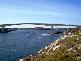 The Hoholmen Bridge (Norwegian: Hoholmen bru) is a cantilever bridge in Herøy Municipality in Nordland county, Norway. Together with the Åkviksundet Bridge, it forms the road connection between Herøy Municipality and Dønna Municipality, two neighboring island municipalities. It is located about 5 kilometres (3.1 mi) north of the village of Herøyholmen, between the small islands of Hoholmen and Kjeøya. The bridge is 316 metres (1,037 ft) long, and the main span is 120 metres (390 ft).[1]