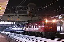 The Hokuriku (北陸) was a "Blue Train" limited express sleeper train service formerly operated by Japanese National Railways (JNR) and later by East Japan Railway Company (JR East), which ran between Ueno Station in Tokyo and Kanazawa via the Shinetsu Main Line and Hokuriku Main Line. The journey took more than seven hours.[2] The service was discontinued on 13 March 2010.