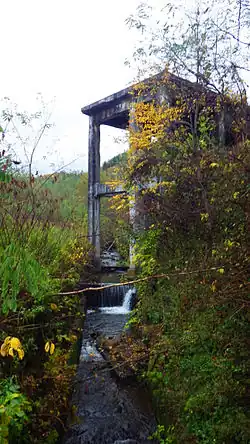Due to its difficult financial situation Hokutan could not even clean up its own properties. Ultimately, only the steel structures (excluding the Horonai shaft) have been erased, but the concrete structures remained standing in the landscape. The city of Mikasa built a railway museum on the access road to the mining site. However, this museum could not replace the income from the mining activities, and the city balanced on the verge of bankruptcy. These events forced the regional government of Sorachi to adjust its regeneration policy. So it proclaimed in 1998 the "Law for the Examination of Mining Heritage," (炭鉱の記憶調査事業, Tankō no Kioku Chōsa Jigyō) which supported the enhancement of regional material and immaterial heritage. In response to it, professor Hirotaka Yoshioka (吉岡宏高) promoted the valorisation of the mining heritage of Mikasa by organizing heritage walks at the site of the mine Horonai, which resulted in the establishment of the landscape park of the coal mine Horonai (幌内炭鉱景観公園, Horonai Tankō Keikan Kōen).[17]
