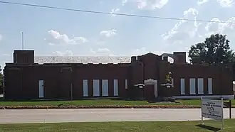 Its construction was a Works Progress Administration-funded project. It is a red brick one-story 100 by 198 feet (30 m × 60 m) building with "allusion" to Art Deco style.[2]