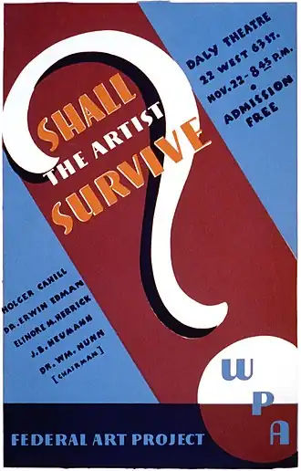 - ^ "Holger Cahill, WPA Director, Sees 'Cultural Erosion' Diverting Talent". The New York Times. December 19, 1937. Retrieved 2010-07-26.