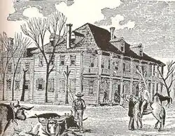 In May 1851, a committee was formed of members from Holland Lodge, Washington Chapter #2, and Ruthven Commandery #2 and submitted a plan for a new three-story building for lodge rooms and a school. By March 1852, a lot had been purchased at the corner of Capitol and Main streets for $600. The erection of the three-story building was contracted for $2500 and completed in October 1852. As planned, the first floor was rented as a school for $20 per month, and the associated bodies met in this new hall until it was destroyed by fire in October 1862.[7]