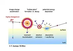 Despite this limited lifetime, the formation and decay of a hollow atom can be conveniently studied from ejected electrons and soft X-rays, and the trajectories, energy loss and final charge state distribution of surface-scattered projectiles. For impact on insulator surfaces the potential energy contained by hollow atom may also cause the release of target atoms and -ions via potential sputtering and the formation of nanostructures on a surface.
