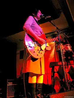 While she was dating Thee Headcoats' drummer Bruce Brand, Holly appeared in an impromptu singing performance with his band. Thee Headcoats founder Billy Childish subsequently added her to the lineup of The Delmonas and changed their name to Thee Headcoatees. The group was primarily a garage band that backed up Thee Headcoats.[1][3] Golightly started her solo career in 1995 but continued as an active member of Thee Headcoatees until they disbanded in 1999.[4] In her solo career, she has drawn from rhythm and blues, rockabilly, and sounds of the 1960s and earlier.[1][3] She is a collector of rare old songs which she often covers.[2]