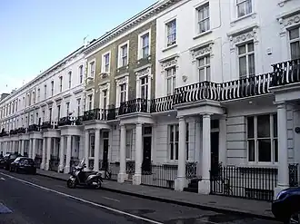 The main terrace extending to the Hollywood Arms was built under ninety-nine-year leases granted by James Gunter to William Corbett or Alexander McClymont which ran from Christmas 1863. Hollywood Road marked the only place where James or Robert Gunter's building campaigns in Kensington reached the Fulham Road.[2]