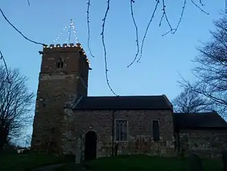 The village Grade II* listed Anglican church of St Peter is dedicated to St Peter.[7] It consists of chancel, nave, and an embattled tower with three bells. Tower, chancel and nave arch are of Saxon or of very early Norman date. It was repaired and partly rebuilt in 1850 by William Hay, and restored and repaired in 1868.[5] Cox noted that it was "nearly rebuilt in brick in 1850, but the tower is one of the many Lincolnshire instances of late Saxon architecture",[8] and in 1964 Pevsner described it as "A rough and, at the time of writing, neglected church", with an 11th-century tower and west window, Decorated bell-openings, a Norman font, and a 1636 Paten cover.[9] Within the churchyard is a 14th-century cross base and shaft.[10]