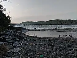The area below the dam is popular with whitewater kayakers, with eleven named hydraulic features.[11] Scheduled whitewater releases[12] from the dam are made, when conditions permit.