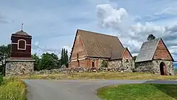Unique for having been built almost entirely of brick rather than stone, the church was a popular pilgrimage destination during the Middle Ages. A grey stone perimeter wall was added in the 16th century.[1] The church contains paintings from the years 1510 through 1922, as well as 40 wooden sculptures dating to the first half of the 14th century.[1] Precious-metal crowns which had formerly belonged to the church were confiscated during the Reformation. The church pulpit, dating to 1550, is the oldest surviving pulpit in Finland. A second pulpit was built in the 17th century. A bell tower next to the church dates to 1813.