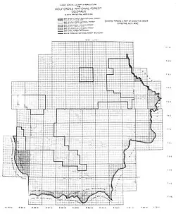 Holy Cross National Forest was established as the Holy Cross Forest Reserve by the U.S. Forest Service in Colorado on August 25, 1905 with 990,720 acres (4,009.3 km2). It became a National Forest on March 4, 1907. On August 7, 1920 Sopris National Forest was absorbed. On January 1, 1945 the entire forest was transferred to White River National Forest and the name was discontinued. [1]