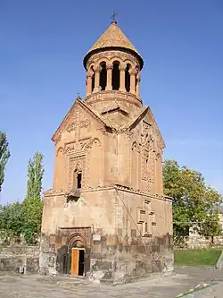 Holy Mother of God Church (Armenian: Սուրբ Աստվածածին եկեղեցի), sometimes known as Yeghvard Church, is a medieval Armenian church located at the center of Yeghvard in the Kotayk Province of Armenia. It was completed in 1301 during the rule of the Zakarid dynasty by the medieval Armenian architect Vardapet Shahik. The main purpose of the construction was to mark the millennium of the spread of Christianity as the state religion in Armenia. It was built and completed as an alternative church of the nearby ruined Katoghike Church, a large three-nave basilica dating back to the 5th and 6th centuries.[1]