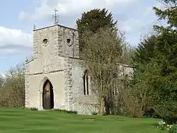 In 1916 Cox stated that Holywell is a chapelry of Careby parish. The church in Holywell Hall grounds was moved in 1699 from a site east of the Castle Bytham road 'between the bridge and the mill' where it had been subject to frequent flooding.[4] It incorporates material from the destroyed church of Aunby, including two Norman piers that support the tower, a Decorated doorway and a window glazed with Perpendicular style glass.[5] Pevsner adds that St Wilfrid's church stands south of Holywell Hall as one of its garden ornaments, has an east window with a mosaic of small fragments from the 15th to 19th centuries, and a paten and chalice dated 1662.[6] St Wilfrid's is Grade II* listed.[7]