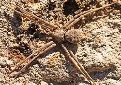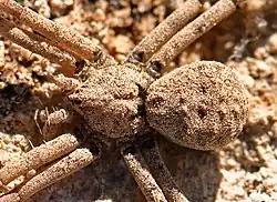 Homalonychus theologus is a species of true spider in the family Homalonychidae. It is found in the United States and Mexico.[1][2][3][4] The spiders camouflage themselves by covering themselves with sand when molting, and typically can be found under rocks or, if rocks are not found in the habitat, dead cacti.[5]