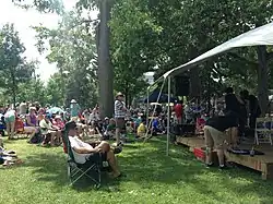 The festival is an admission by donation and is held in Victoria Park, London, Ontario.[3] It is hosted by the Home County Folk League, a non-profit organization formed in 1973, and they have held a festival every year since 1974.[4] In 2023, it was announced that the 2024 festival was canceled.[5]
