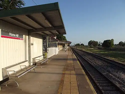 Home Hill railway station is on the North Coast line in Queensland, Australia, serving the town of Home Hill. It has one platform, with a passing loop across from it.