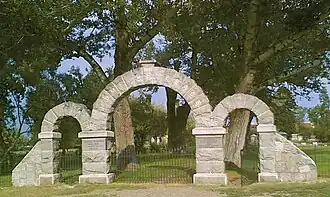 Home of Peace is a Jewish cemetery in Helena, Montana, founded in 1867 by the local Hebrew Benevolent Society (also referred to as the Hebrew Benevolent Association), which formed on December 9, 1866.[3] The Society formally purchased the land in 1875. The Home of Peace Cemetery Association now maintains the grounds. It is the oldest active cemetery in Helena and the oldest active European ethno-religious cemetery in Montana.[2][3] There are three major sections of land owned by the Association: the cemetery, undeveloped adjacent land, and land leased to the Helena School District since 1975. The portion leased by the school district is a practice football field for Capital High School and contains unmarked graves from the earliest days of the cemetery. The original wrought iron fence erected in 1867 still stands except on the north side and is in disrepair in places. A granite gateway erected in 1910 is at the main entrance. The east gate also has granite markers. There is a water tower, pump house, and landscaping shed. Twelve broken tombstones lie at the base of the water tower. The northwest corner has remained undeveloped and in its natural wild state. In 1910 cottonwood trees were planted along the driveway.[2]