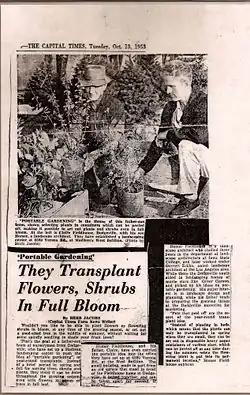 In 1953, Homer moved to Madison, Wisconsin to open a nursery business with his father.[4] The father-son team worked together until Claire died in 1957. Throughout the mid- to late-1950s, Homer worked on landscaping projects for a variety of clients, often traveling to California during the winter months to work. Homer and Lynn Sulis married at the Frank Lloyd Wright-designed First Unitarian Society Meeting House on June 28, 1958.