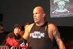 On September 10, 2010, Homicide made his return to the independent circuit at a Combat Zone Wrestling event, where he announced that his return match for the company would take place on October 9, when he would face Sami Callihan.[104] The following day he appeared for Evolve, confronting Johnny Gargano and Jon Moxley.[105] On October 9 Homicide defeated Sami Callihan in the main event of CZW's It's Always Bloody in Philadelphia.[106] On November 20 Homicide made his in-ring debut for Evolve, losing to Jon Moxley via controversial referee stoppage.[107] The following day Homicide made his debut for Chikara, losing to Eddie Kingston in the main event of the evening.[108] On December 11, 2010, at the Cage of Death XII pay-per-view, Homicide challenged Jon Moxley for the CZW World Heavyweight Championship, but was unsuccessful in dethroning the defending champion.[109] On December 19 Homicide unsuccessfully challenged Slyck Wagner Brown for the 2CW Heavyweight Championship at a Squared Circle Wrestling event.[110] In February 2011, Homicide travelled to Perth, Western Australia to compete at New Horizon Pro Wrestling's Battle of Honor event on February 11. He defeated Tama Williams in the main event to win the NHPW Art of Fighting Championship.[111][112]