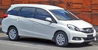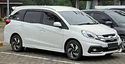 The Mobilio nameplate was revived as an MPV model based on the Brio platform, designed mainly for the Indonesian market. Developed by Honda R&D Asia Pacific,[8][9] it was first unveiled as a prototype model at the 21st Indonesia International Motor Show on 19 September 2013. Production of the Mobilio began on 15 January 2014 at Honda Prospect Motor's Karawang plant and sales began on 25 January 2014 in Indonesia. Trim levels offered were S, E, E Prestige and RS (since June 2014) with either a 5-speed manual or a CVT (E, E Prestige and RS only) transmission. The second generation Mobilio is powered by either the 1.5 L L15Z1 i-VTEC petrol engine or the 1.5 L N15A1 i-DTEC diesel engine for Indian market.[10] In the same year, the Mobilio won the Car of the Year Otomotif Award 2014 in Indonesia.[11][12][13]
