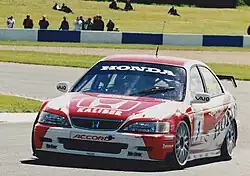 It was in 1995 that Honda first joined the British Touring Car Championship (BTCC). The car they used was the Accord.[39] David Leslie got Honda's first podium at Oulton Park that year,[40] but they only finished seventh in the manufacturers' championship. 1996 was more successful as Leslie took three wins and finished fourth in the drivers' championship.[41]