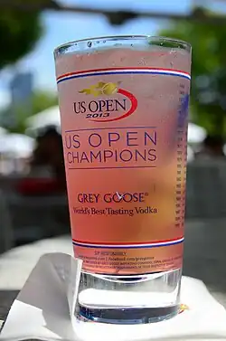 It is the signature cocktail of the US Open tennis tournament.[2] As of September 2024 the Grey Goose vodka company estimated sales of over 2.2 million drinks to tennis fans in a collectible acrylic cup.[3] In 2024, it is priced at $23 per drink.[4] It was created by restaurateur Nick Malone, with the melon balls cut to resemble green tennis balls.[4] Two counterparts in tennis worldwide are the Pimm's cup for Wimbledon, and champagne for the French Open. It is not known if the U. S. Open will follow the lead of the French Open by banning alcohol in the stands because it makes the fans too rowdy.[5]
