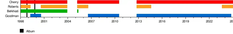 On 17 August 2023, former member Abdi announced that she had rejoined the group ahead of the group's 25th anniversary via her personal Instagram account.[36] On 24 August 2023, when asked during an Instagram live stream about why former member Belkhiati did not rejoin the group for the 25th anniversary, Cherry explained that she had unsuccessfully asked Belkhiati to rejoin the group many times, but said that the door would always be open for her to rejoin.[37]