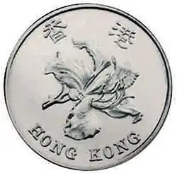 In 1993 the portrait of Elizabeth II was replaced with the Bauhinia flower, this design is used to the present day but its first year's issue was made of nickel-plated steel as opposed to cupro-nickel.[2] in 1997 a commemorative issue with a Chinese unicorn, the Qilin on the reverse was issued for the handover of Hong Kong to China.