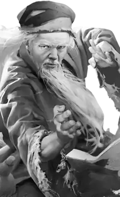 Hong Qi, better known as Hong Qigong,[notes 1] is a fictional character in the wuxia novel The Legend of the Condor Heroes and its sequel, The Return of the Condor Heroes, by Jin Yong. Best known for his most powerful martial arts (the Eighteen Subduing Dragon Palms and the Dog Beating Staff Technique), Hong Qigong is the chief of the Beggars' Gang and one of the Five Greats, the five most powerful martial artists in the jianghu (martial artists' community) of his time. He plays a significant role in the first novel by imparting his skills to the protagonists, Guo Jing and Huang Rong. Huang Rong also succeeds him as the Beggars' Gang's chief. In the second novel, he makes a brief appearance and teaches the protagonist Yang Guo the Dog Beating Staff Technique before dying together with his old rival Ouyang Feng.