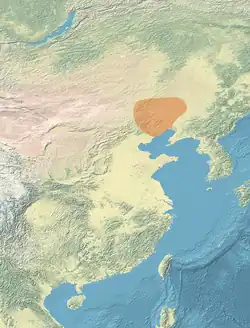 The Hongshan culture region was thought to have been desert for the past 1 million years. However, a 2015 study found that the region once featured rich aquatic resources and deep lakes and forests that existed from 12,000 years ago to 4,000 years ago. It was changed into desert by climate change which began approximately 4,200 years ago.[21] Therefore, some of the people of the Hongshan culture may have emigrated south to the Yellow River valley approximately 4,000 years ago.[22][23] Archaeological evidence discovered at the Miaozigou site in Ulanqab, Inner Mongolia, a northern branch of the Yangshao culture from the Yellow River (the Yangshao culture is speculated to be the origin of the Sino-Tibetan languages[24][25][26][27]) demonstrates similarities in the material cultures between the Yellow River and Liao River cultures.[28] Three individuals from the Miaozigou site belonged to haplogroup N1(xN1a, N1c), while the main lineage of Yellow River valley cultures is O2-M122. The existence of N1(xN1a, N1c) among the Miaozigou individuals could serve as evidence for the migration of some of the Hongshan people.[29]