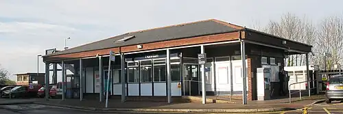 A modern station building stands on the main platform which is on the southern side of the line. A footbridge to the west of this links the northern platform which has a small waiting shelter. The 1957-built signal box at the Exeter end of this platform closed and was demolished in 2012. The main station car park is situated behind the former site of the signal box. The station saw a refurbishment in Spring 2011, providing a new booking hall, more CCTV, shelters and increased accessibility.[1][5]