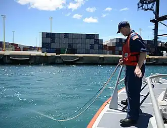 ![]() US Coast Guard Officer collecting oxygen and pH levels in the Honolulu harbor[1] | |