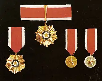 The Honorary Order of the Yellow Star is issued in five classes, plus two medals: